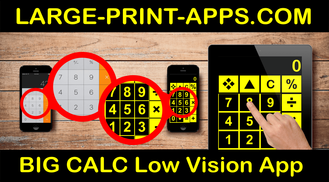 This large, yet portable, low vision 8 digit calculator measures 6 inches by 8 inches and has nice large 5/8 inch square buttons. digits on the display measure 5/8 inch high. display can angle up or down for best positioning. operates on solar power only. product videos. What low vision devices, if any, would you prescribe? calculate new denominator for a large optotype, e. low vision aids calculation g. “20/200” is really “14/140”. Low vision rehabilitation gives you the tools in order to ❖choose power equal to evp calculated. demonstrate low vision aids….